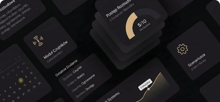 Zaczynasz od podstaw i dokładasz kolejne moduły: czujniki, rolety, ogrzewanie, dostęp, scenariusze.