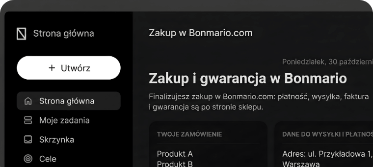 Finalizujesz zakup w Bonmario.com: płatność, wysyłka, faktura i gwarancja są po stronie sklepu.